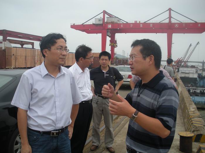 2010年9月8日,湖南省社科院研究員黃海一行在長沙市口岸辦副主任王光輝的陪同下,來長沙新港進行長沙水運口岸建設的調(diào)研。 長沙新港有限責任公司董事秘書、總經(jīng)理助理辛華,長沙集星集裝箱碼頭有限公司總經(jīng)理龔耀南,總經(jīng)理助理周勇,長沙中理外輪理貨有限公司總經(jīng)理周世杰就長沙港口過去 一年的工作成績、工作亮點、存在的困難和問題,及對長沙水運口岸建設與發(fā)展的建議和思路作了匯報。 |