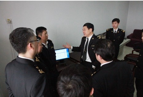 3月28日,長沙海關副關長熊松海就無紙化通關發(fā)展推進情況關考察長沙新港集星集裝箱碼頭。