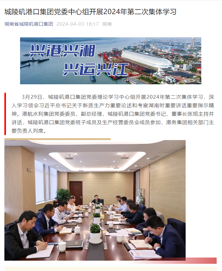 城陵磯港口集團(tuán)黨委中心組開(kāi)展2024年第二次集體學(xué)習(xí)