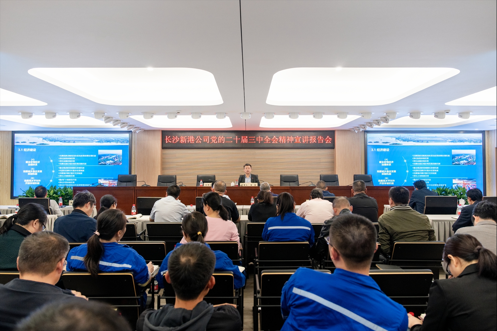 11月14日,省港航水利集團黨委委員、副總經(jīng)理,省城陵磯港口集團黨委書記、董事長張旭向長沙新港公司全體黨員干部宣講黨的二十屆三中全會精神。 張旭結(jié)合思想工作實際,從正確認識黨的二十屆三中全會召開的時代背景、深刻理解全面深化改革的重大意義和總體要求、準確把握進一步全面深化改革的戰(zhàn)略部署、深入學習貫徹全會精神中推動集團高質(zhì)量發(fā)展等四個方面,向長沙新港全體黨員干部開展宣講,分享學習體會。他指出,全體黨員干部要切實把思想和行動統(tǒng)一到黨中央精神上來,深刻理解全會精神的核心要義、豐富內(nèi)涵和實踐要求,牢牢把握進一步全面深化改革、推進中國式現(xiàn)代化的重點任務,以釘釘子精神抓好改革任務落實。 張旭強調(diào),各級黨組織要把學習貫徹黨的二十屆三中全會精神,與做好當前重點工作結(jié)合起來,精心組織、周密安排、狠抓落實,確保全會的決策部署在集團各生產(chǎn)單位、各港口碼頭落地生根、開花結(jié)果。要開展專題學習,扎實抓好學習宣貫工作,充分運用湘水云課堂、國資E學、學習強國、紅星云等學習平臺完成線上學習;要強化責任擔當,狠抓工作落實,細化工作措施,沖刺最后兩個月,全面完成各項目標任務;要推動港口創(chuàng)新發(fā)展、綠色發(fā)展、安全發(fā)展。要樹牢“一盤棋”思想,扛實“優(yōu)化交通運輸結(jié)構(gòu)、降低社會綜合物流成本”的使命任務;要加強對改革工作的監(jiān)督管理,建立改革督查檢查機制,進一步優(yōu)化督辦體系,定期聯(lián)合開展督查檢查,在發(fā)現(xiàn)問題、解決問題上下功夫,以實績實效和職工群眾滿意度檢驗改革。 張旭要求,要準確把握黨中央對當前經(jīng)濟形勢的科學判斷和對下半年經(jīng)濟工作的重大部署,堅定不移推進全面深化改革,奮力開創(chuàng)湖南港口事業(yè)高質(zhì)量發(fā)展新局面,為實現(xiàn)“三高四新”美好藍圖、全面建設(shè)社會主義現(xiàn)代化新湖南作出更大貢獻!  |
