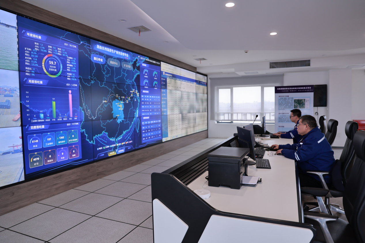 2025年1月28日除夕夜,湖南省城陵磯港口集團(tuán)長沙新港碼頭燈火通明,機(jī)聲轟鳴,一派繁忙景象,長沙新港公司黨委委員、副總經(jīng)理鄭美洲來到港區(qū)開展春節(jié)慰問活動,為堅守崗位的職工送上誠摯的感謝和溫暖,并致以節(jié)日的問候和新年美好的祝福。 “今年除夕,生產(chǎn)任務(wù)依舊繁重,調(diào)度中心要多關(guān)注生產(chǎn)作業(yè)情況”。鄭美洲叮囑到。在5樓智能調(diào)度中心監(jiān)控視頻里,總能看到一個個熟悉的身影穿梭在港區(qū)各作業(yè)面:北片區(qū)4號倉庫正在緊張有序的作業(yè)著,碼頭前方滿載庫利塊的船舶正在5號吊機(jī)下開始卸貨,長沙新港專用鐵路線上停放著75節(jié)車廂,等待裝車發(fā)運(yùn),一切如同往日。唯一不同的是辦公樓墻面上懸掛的“福”字和中國結(jié),在夜色的襯托下,渲染了春節(jié)的喜慶氛圍。