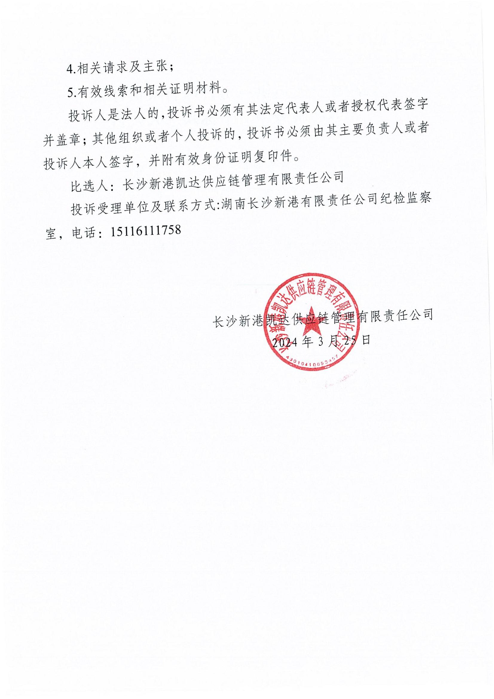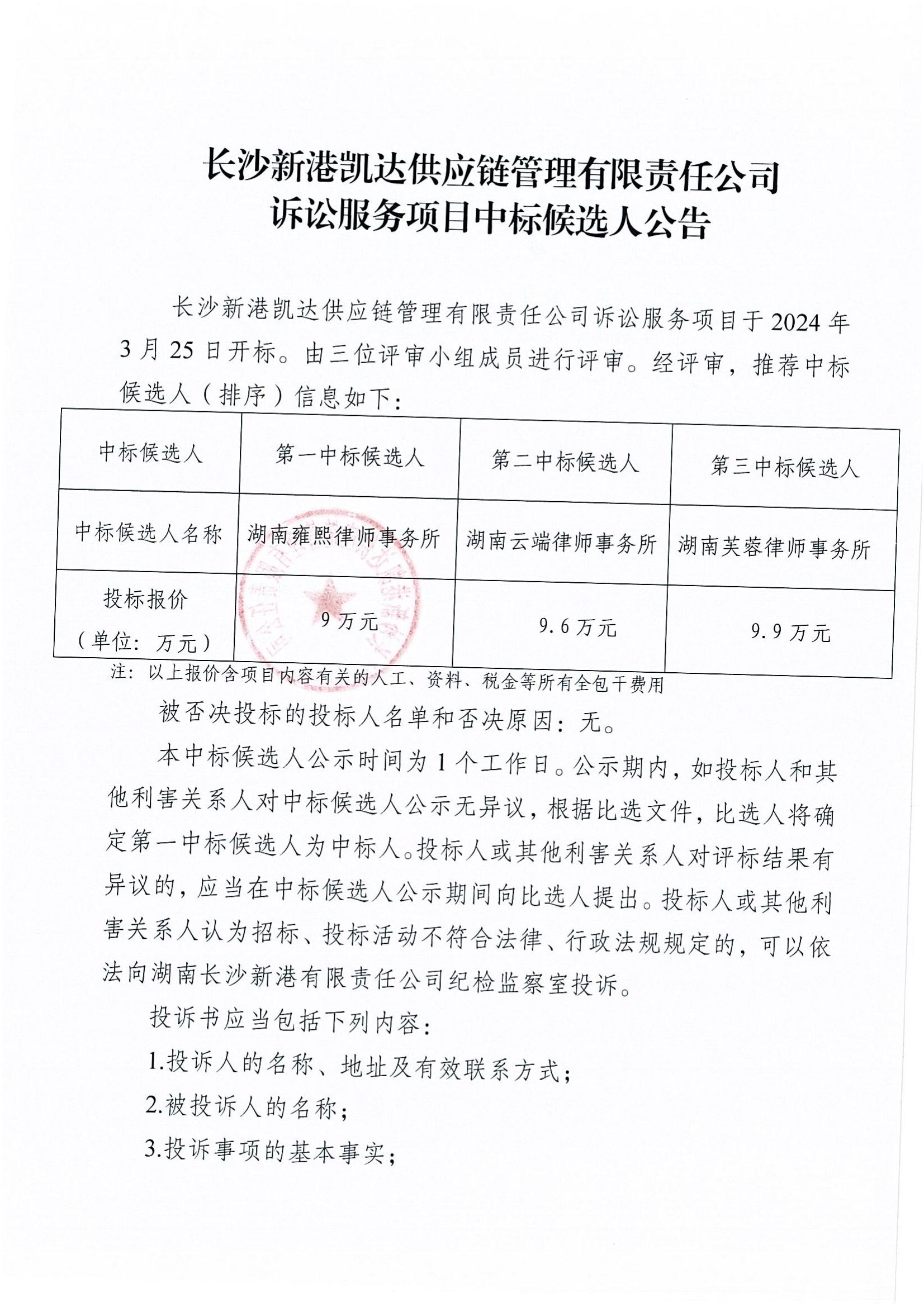 長(zhǎng)沙新港凱達(dá)供應(yīng)鏈訴訟服務(wù)項(xiàng)目中標(biāo)候選人公告