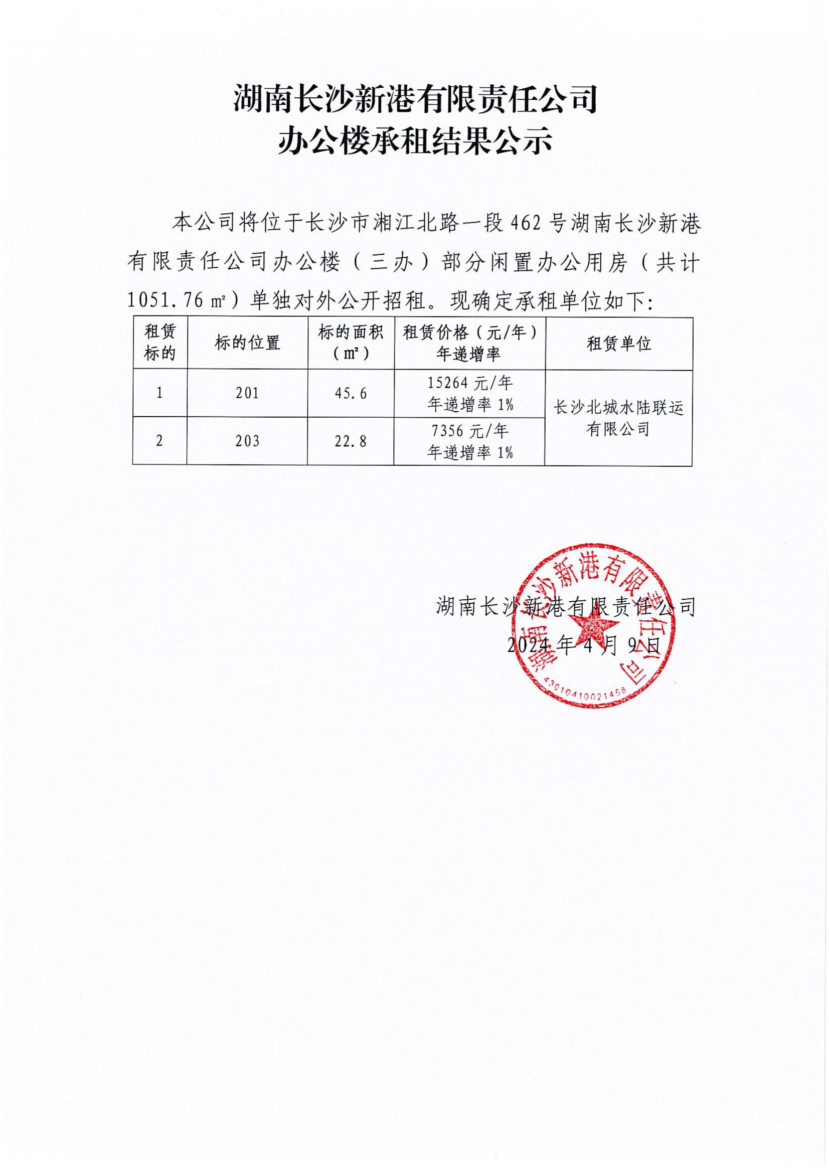 湖南長沙新港有限責任公司辦公樓承租結(jié)果公示