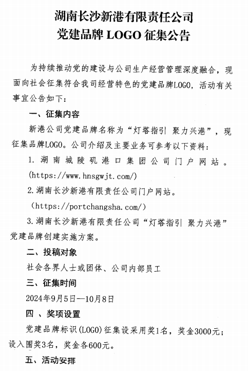 湖南長沙新港有限責任公司黨建品牌 LOGO 征集公告
